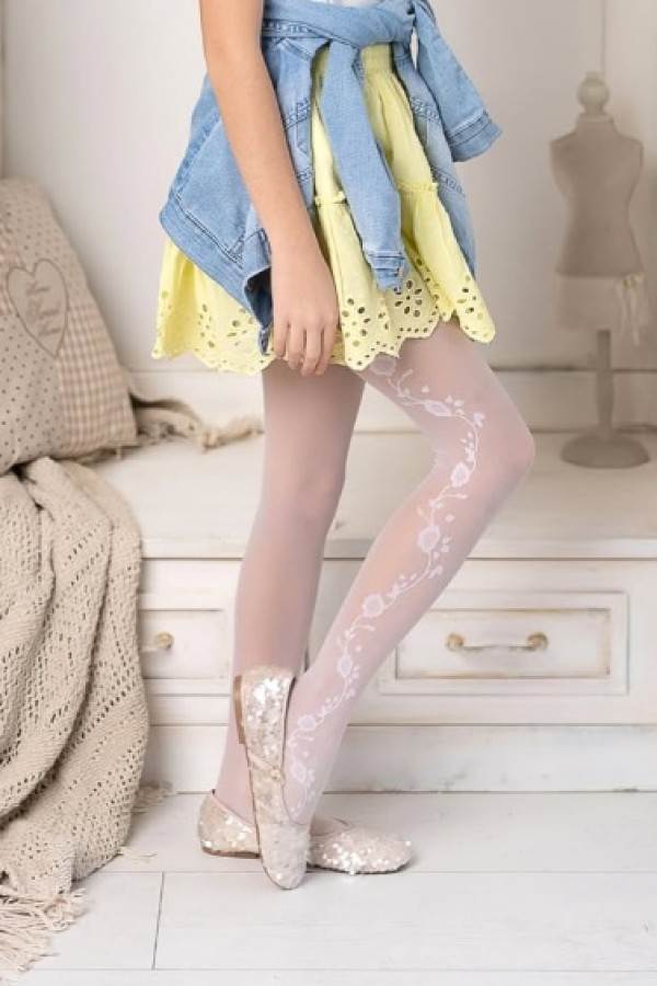 Dresuri pentru fetite realizate din lycra. Dresurile sunt infrumusetate pe partile laterale exterioare ale picioarelor cu model floral deosebit. Ideale pentru ocazii speciale, festive.