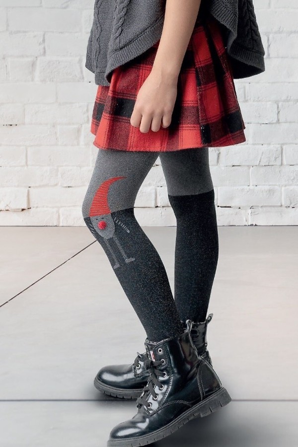 Dresuri pentru fetite realizate din microfibra melanj de inalta calitate cu ajutorul tehnologiei 3D. Dresurile prezinta model fantezie ce imita sosetele inalte si infrumusetate in partea laterala a picioarelor cu cate un imprimeu cu un gnom de Craciun cu un pompon micut aplicat in loc de nas. Ideale pentru micile domnisoare carora le place sa starneasca admiratia celor din jur.
