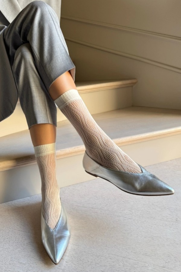 Sosete de dama realizate din tesatura placuta la atingere, cu model ajurat deosebit.