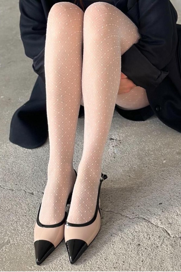Dresuri de dama realizate din lycra, cu model geometric deosebit cu romburi si puncte.