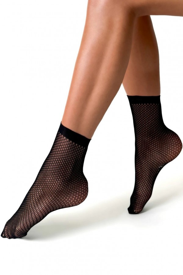 Sosete de dama realizate din plasa fina cu ochiuri ovale medii si finisate in partea superioara cu banda elastica care nu exercita presiune asupra piciorului.